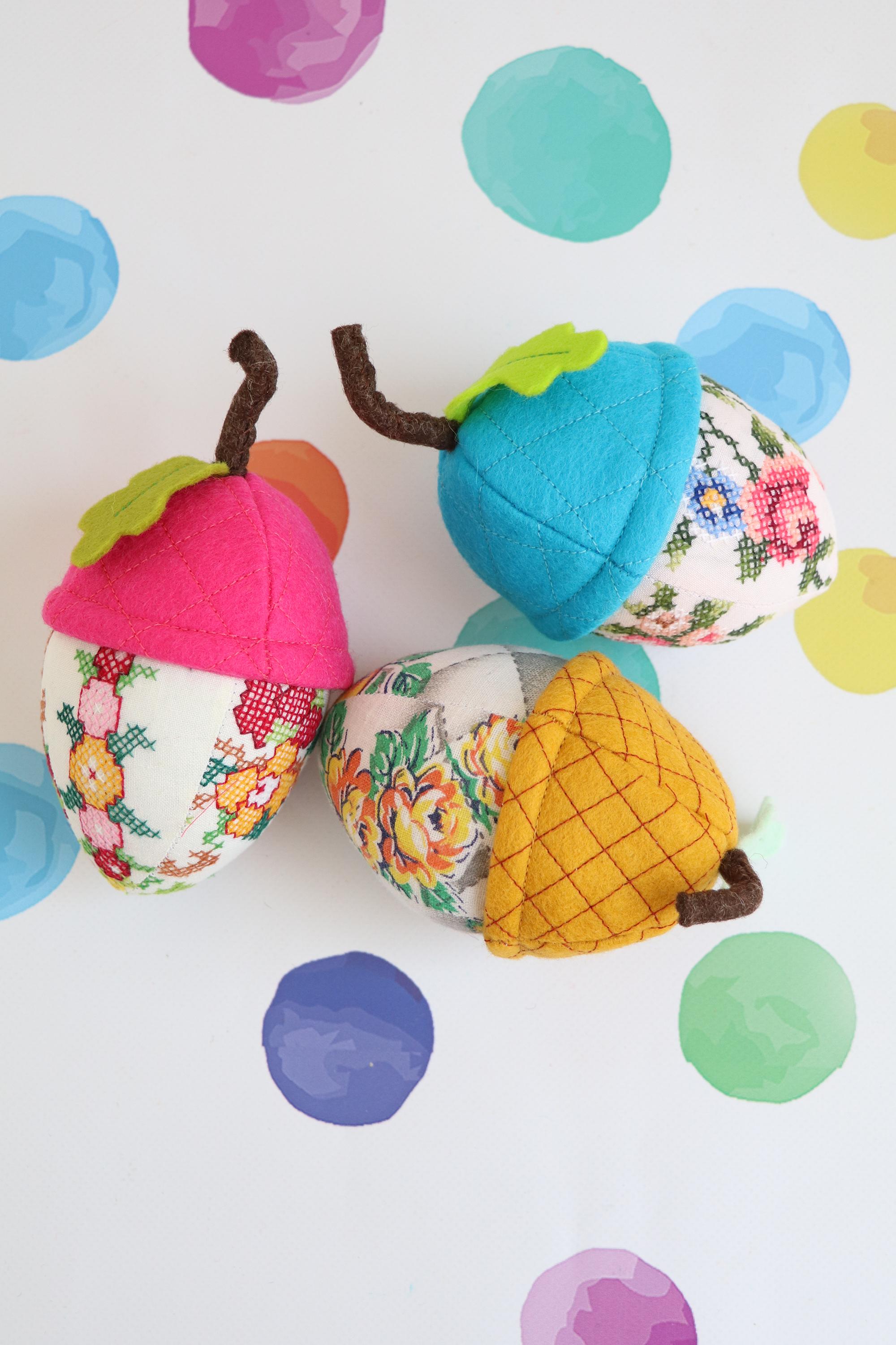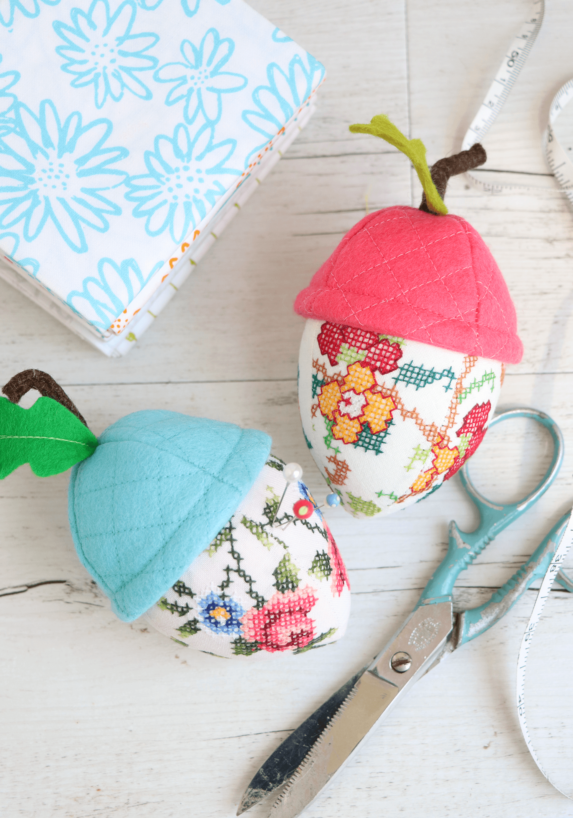 Choose your favourite quilting cottons, prints and felt accents to make each pincushion uniquely yours.